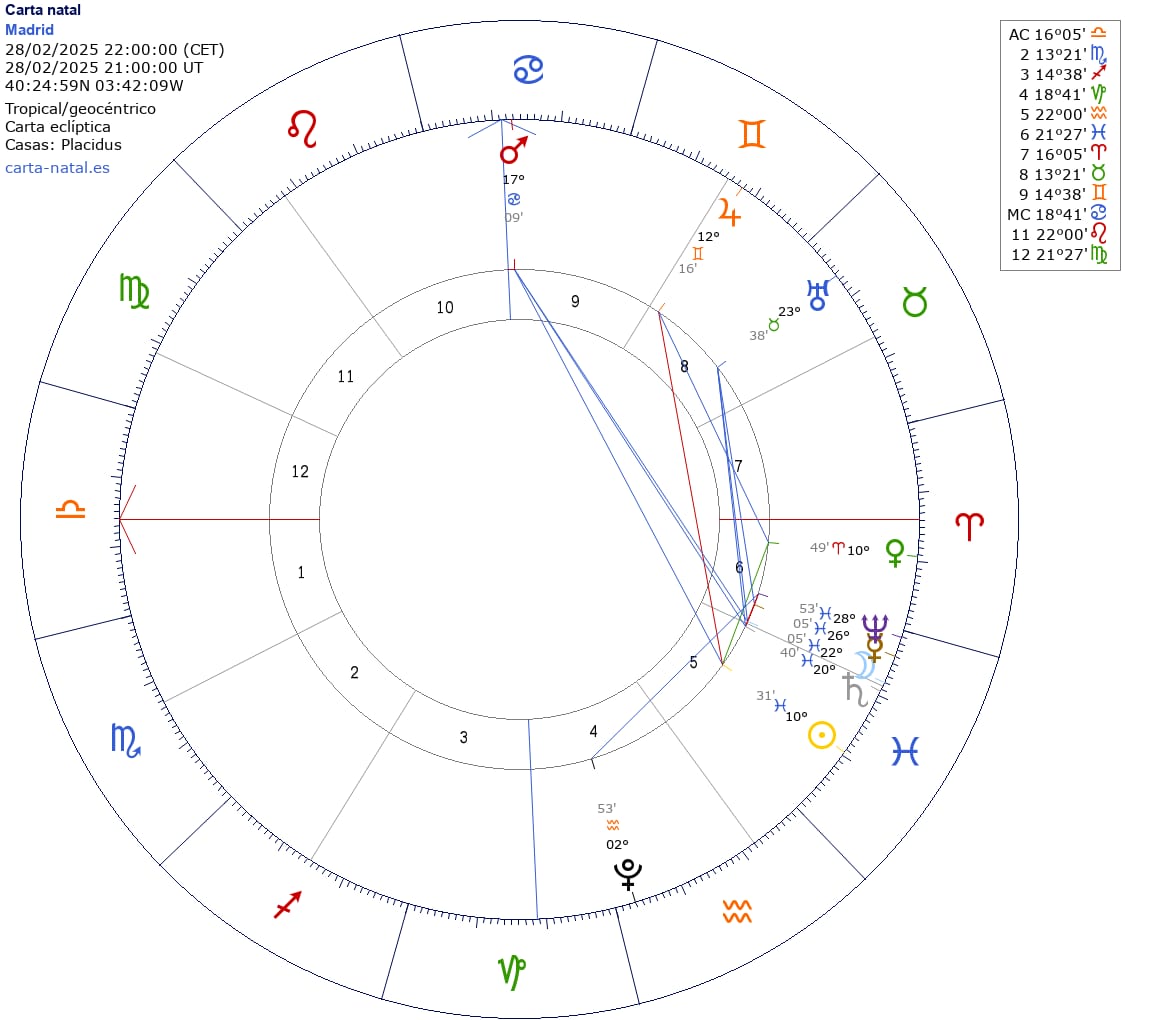 Los 5 planetas ubicados en Piscis, signo zodiacal que representa la entrega sin límites de nosotros hacia los más altos valores espirituales. En este signo se encuentran: El sol para que nuestro espíritu y progreso sean por la libertad espiritual y acaben los karmas. Saturno para realizar con estrategia, método y eficacia un plan económico contra el hambre y bajar las armas a nivel mundial, La Luna limpiando y purificando nuestras emociones, para desarrollar nuevas formas de relaciones humanas, con luz, claridad y colaboración, Mercurio, que ayuda a elevar nuestra inteligencia hacia fines de sostenibilidad y cuido del planeta. Neptuno, para expandir nuestro sentimiento al colectivo y crear instituciones de ayuda al más necesitado.